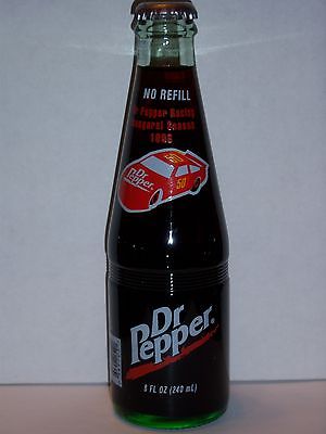 Title (ebay affiliate link): 8 OZ DR PEPPER COMMEMORATIVE BOTTLE - 1998 DR PEPPER RACING INAUGURAL SEASON