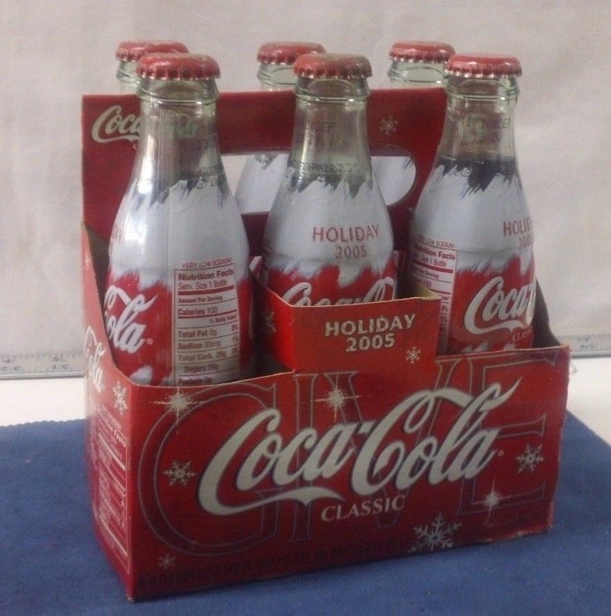 Title (ebay affiliate link): Coca Cola Classic Bottles Xmas 05 Holiday Polar Bear Full Red Unopened 6 Pk 8oz