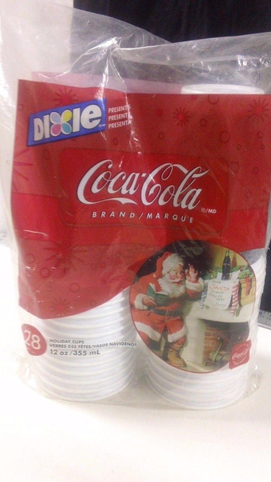 Title (ebay affiliate link): Coca Cola Plastic Dixie Cups Holiday 12oz Santa Artwork 1963/4 Train Fireplace