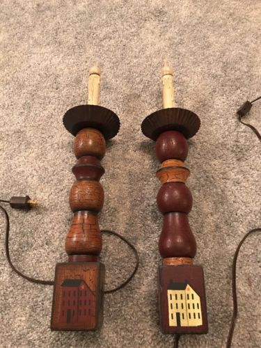 Title (ebay affiliate link): Lot Of 2 Primitive Look Electric Candle Candlestick Lamps Cottage Country