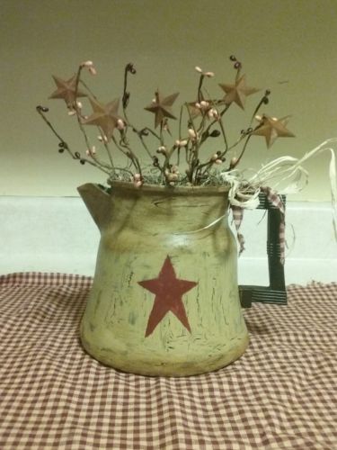 Title (ebay affiliate link): Primitive Crackle Star Coffee Pot & Pips- Rustic Country Farmhouse Decor