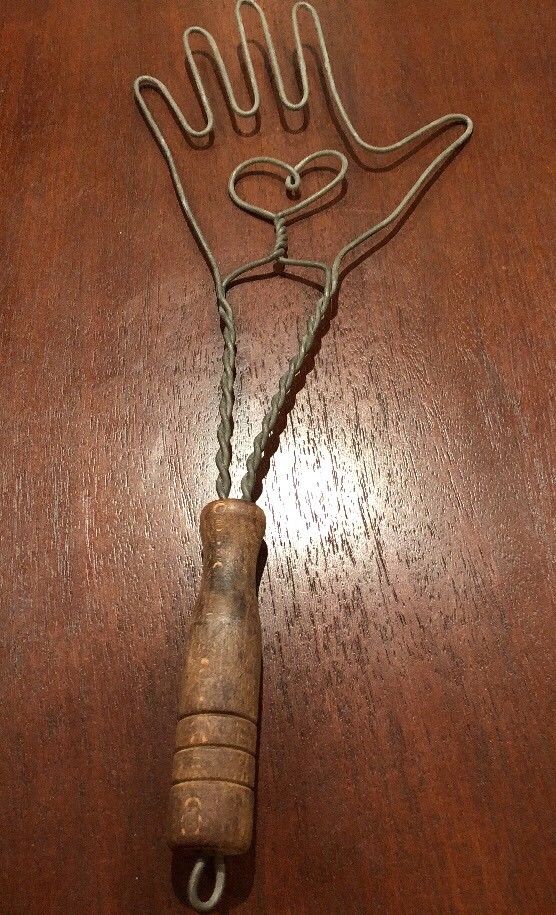 Title (ebay affiliate link): Primitive Country Hand & Heart Shaped Metal Twisted Wire Rug Beater Wood Handle