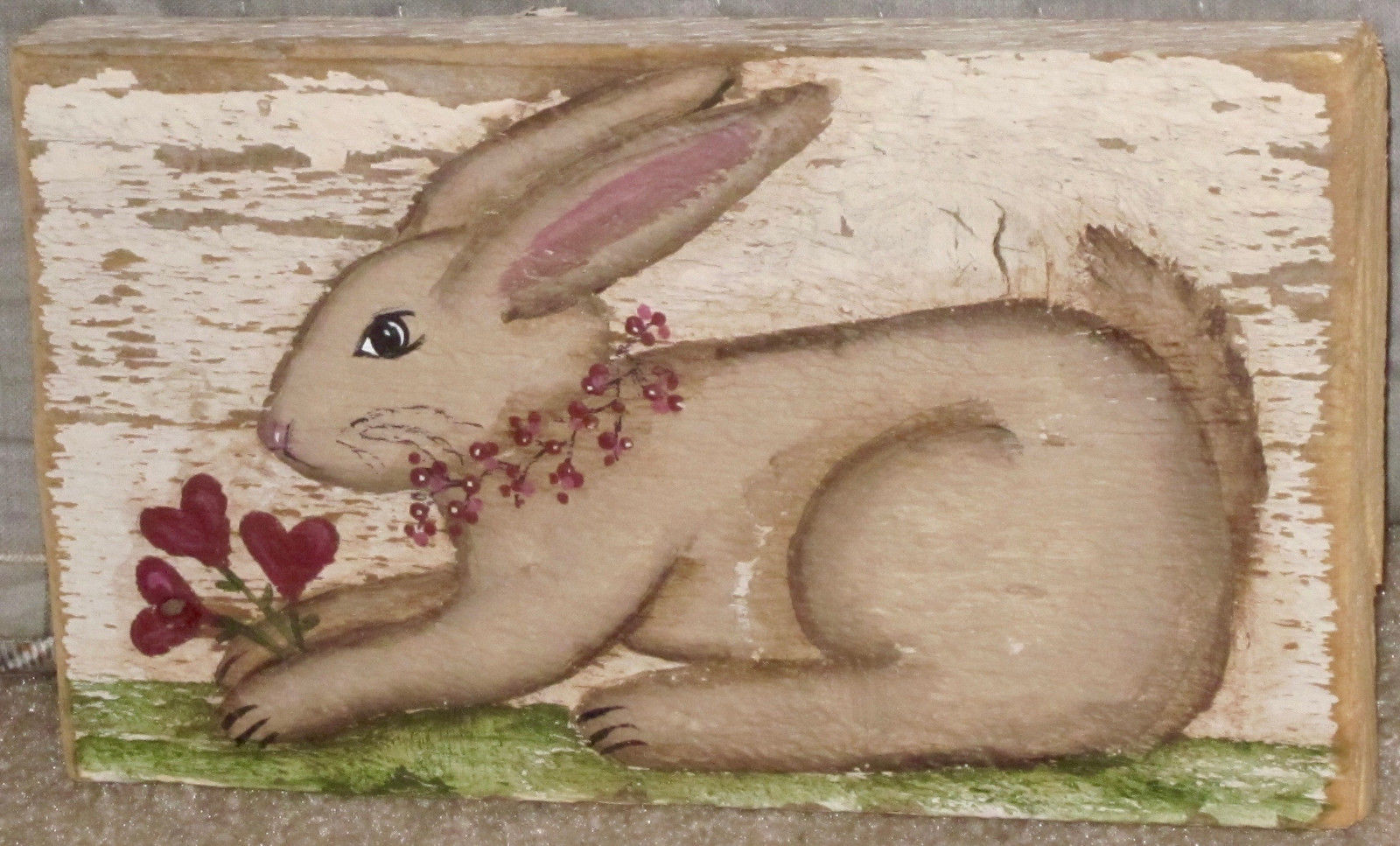 Title (ebay affiliate link): *~*PRIMITIVE*~* HP FOLK ART PRIM BUNNY * HEARTS * VALENTINE *~* RECLAIMED WOOD