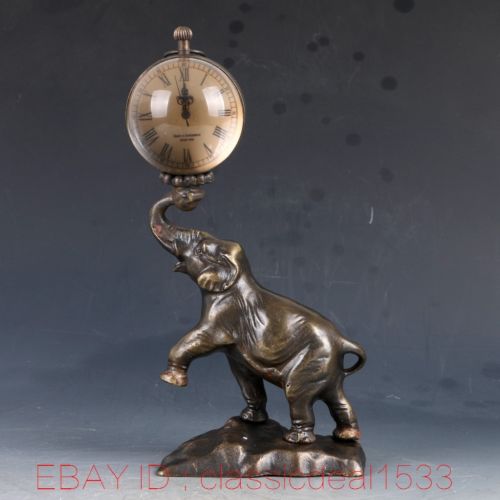 Vintage Collectible Old Chinese Brass Handwork Elephant Mechanincal Globe Clock