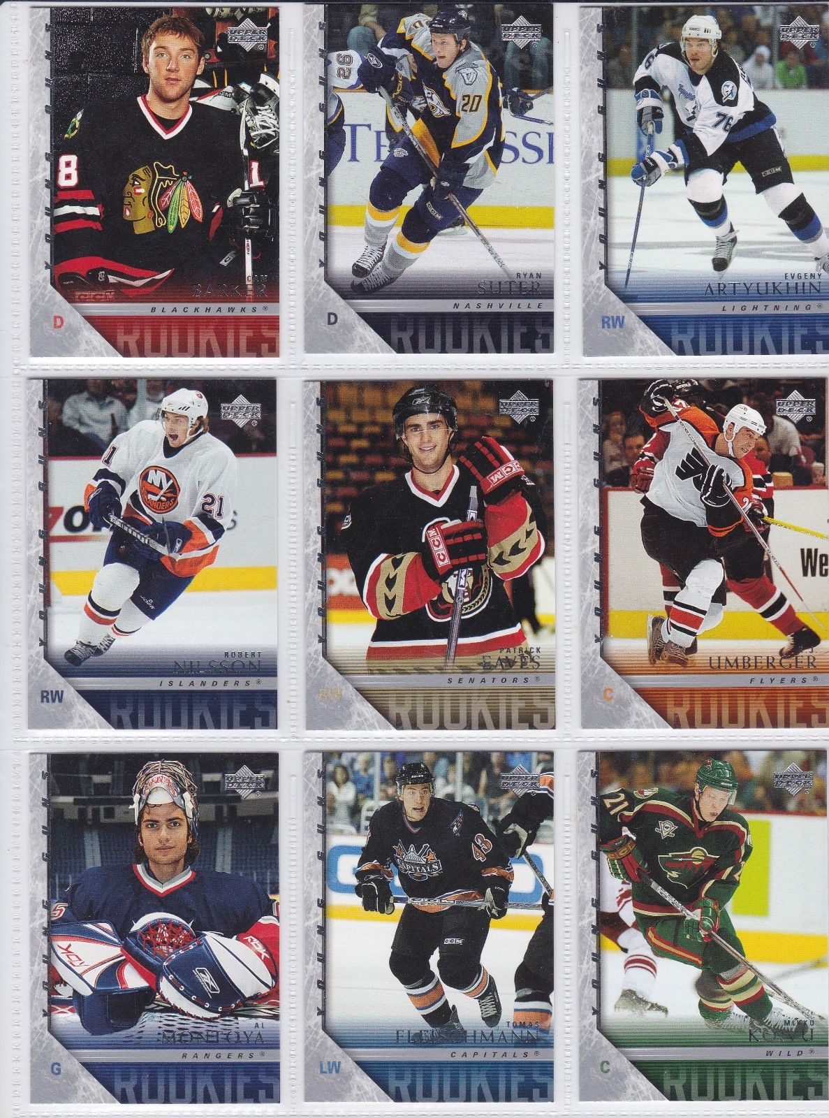 2005/2006 Upper Deck, Lot of 9 Rookie Young Gun cards,