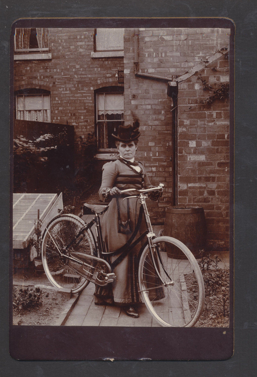 Title (ebay affiliate link): CAB103 Victorian Cabinet Photo: Lady with Bicycle Outdoors, Unsigned