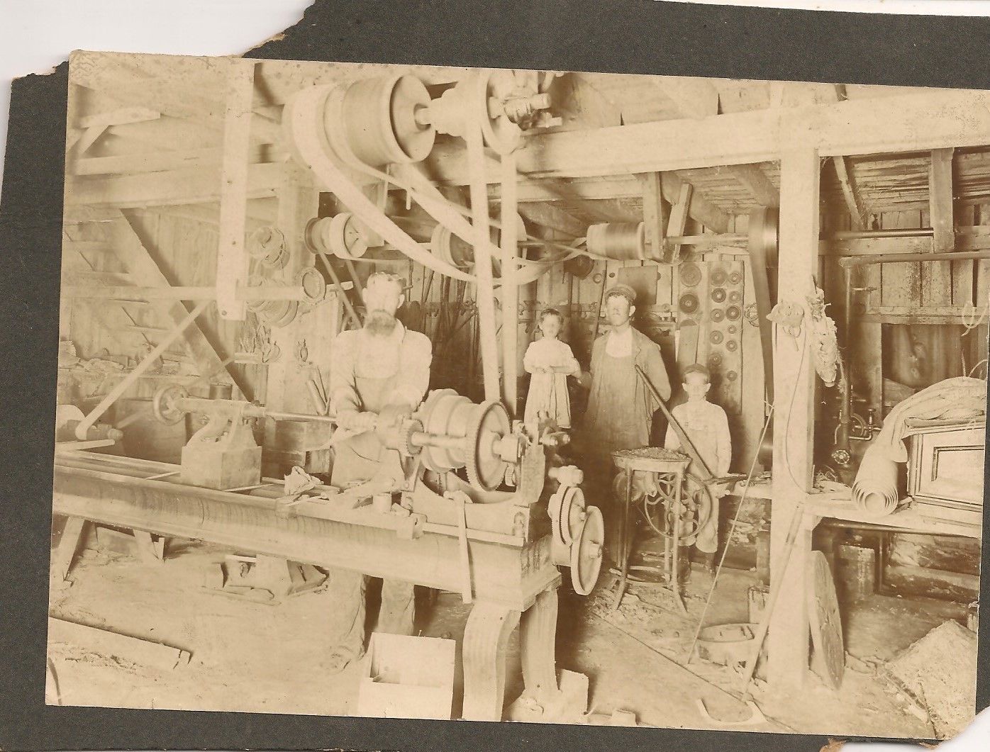 ORIGINAL PHOTO -EARLY MACHINE SHOP SHOWN WITH WORKERS AND CHILDREN