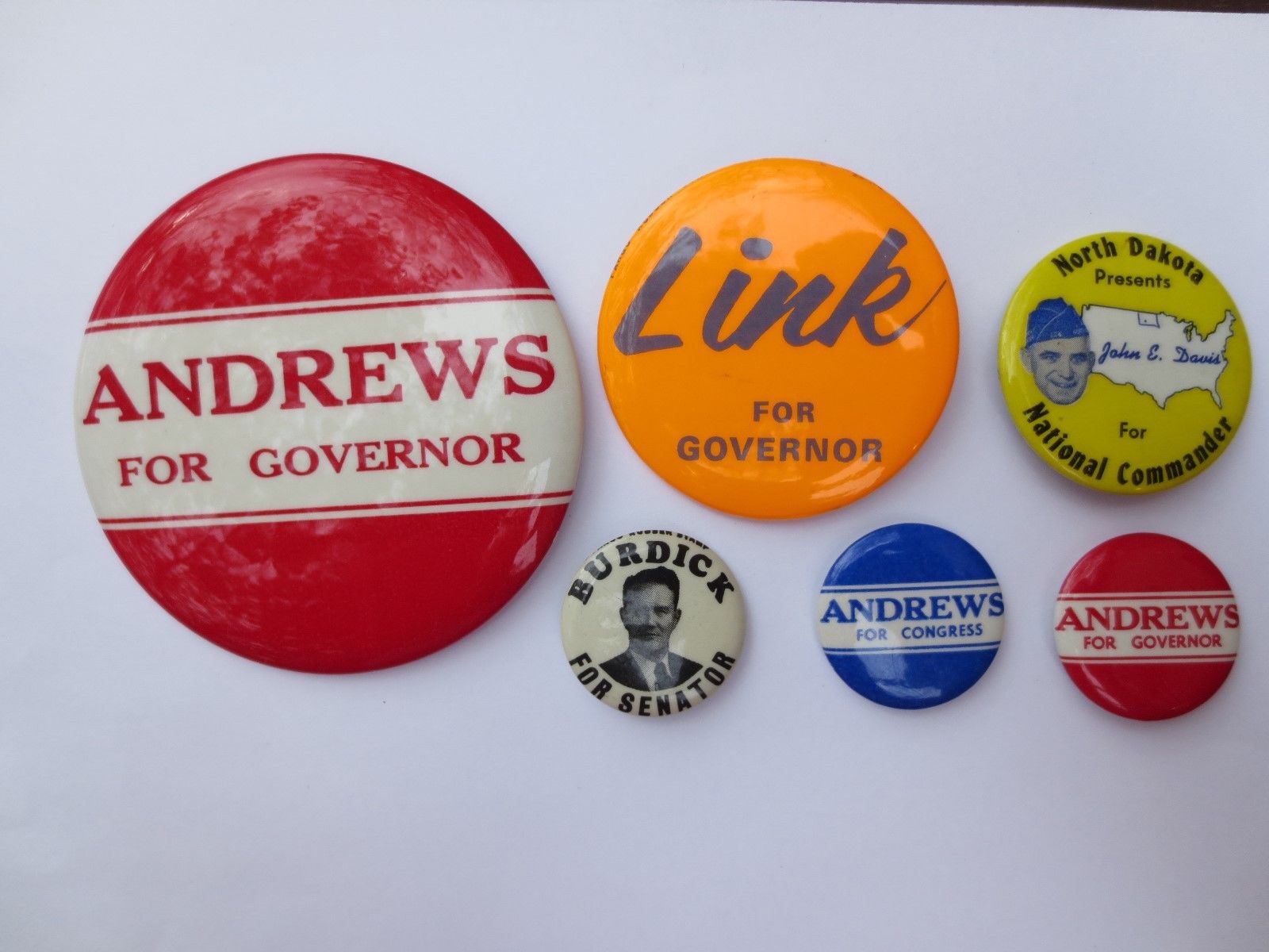 Title (ebay affiliate link): Collection of 6 Celluloid Pinbacks for Various Offices from North Dakota
