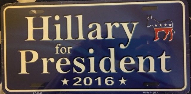Title (ebay affiliate link): 6 by 12" Metal Hillary for President 2016 License Plate