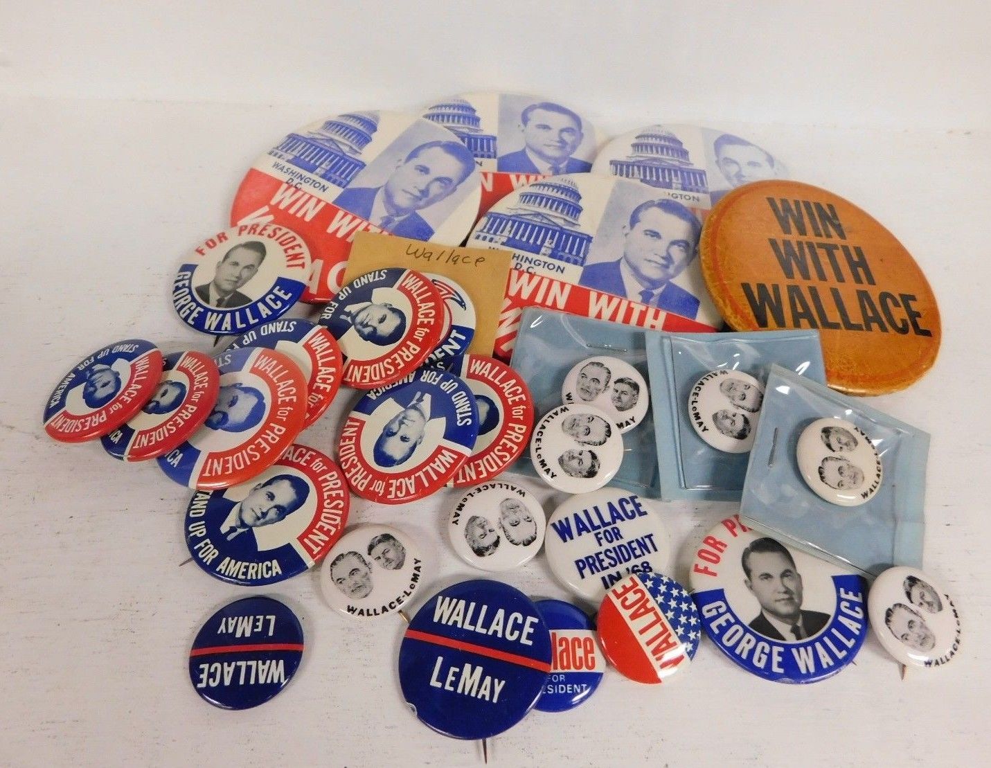 Title (ebay affiliate link): Lot of 28 George Wallace for President Pin Back Campaign Buttons Mixed sizes