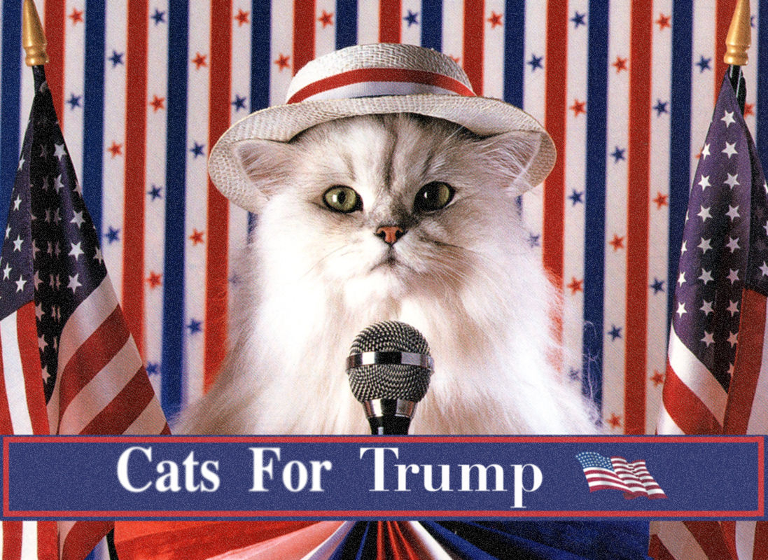 Title (ebay affiliate link): CATS FOR DONALD TRUMP US Presidential Election Humor -Window Cling Decal Sticker