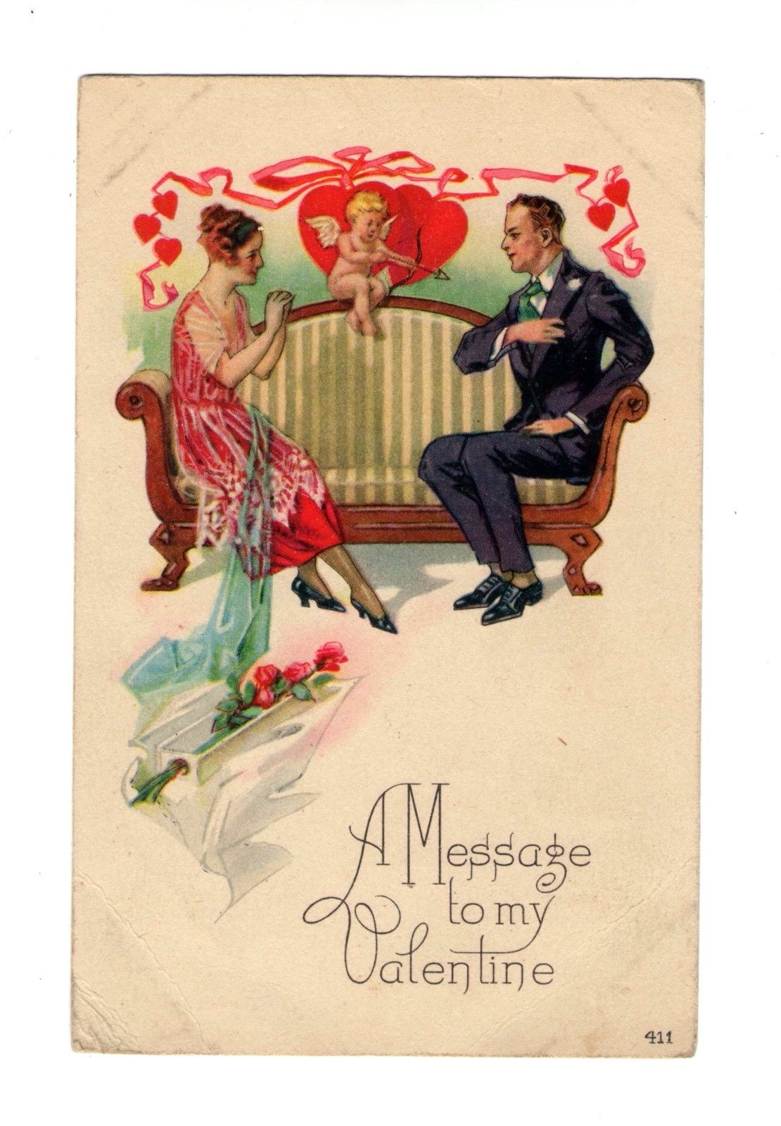 Title (ebay affiliate link): Antique Cupid Shoots Arrow At Couple Valentine Postcard Unusual Publisher Logo
