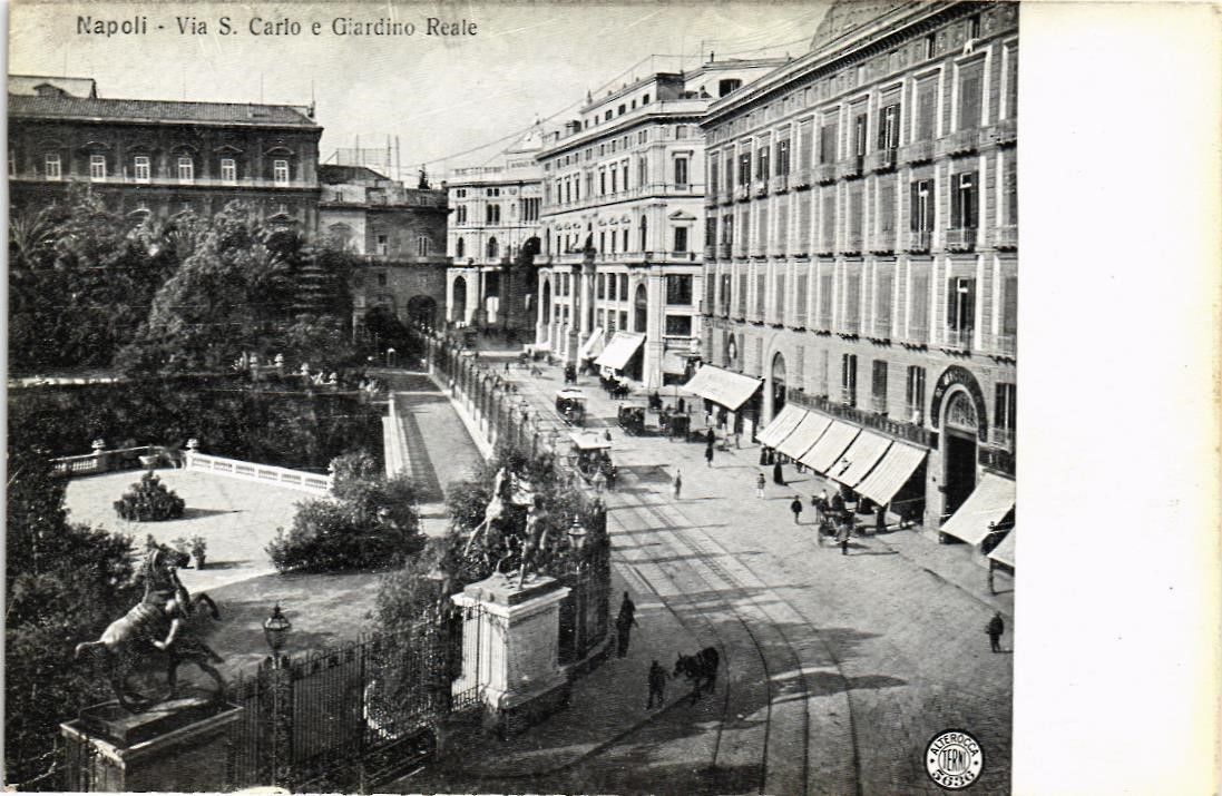 DR JIM STAMPS VIA CARLO AND ROYAL GARDEN NAPLES ITALY VIEW POSTCARD