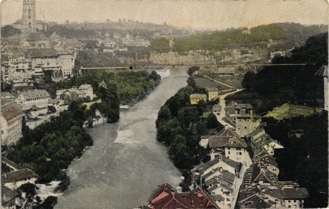 Title (ebay affiliate link): DR JIM STAMPS VIEW OF RIVER AND CITY FRIBOURG SWITZERLAND POSTCARD 1915