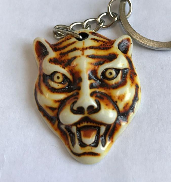 Vintage Carving Tiger Head Keychain Rock jewelry