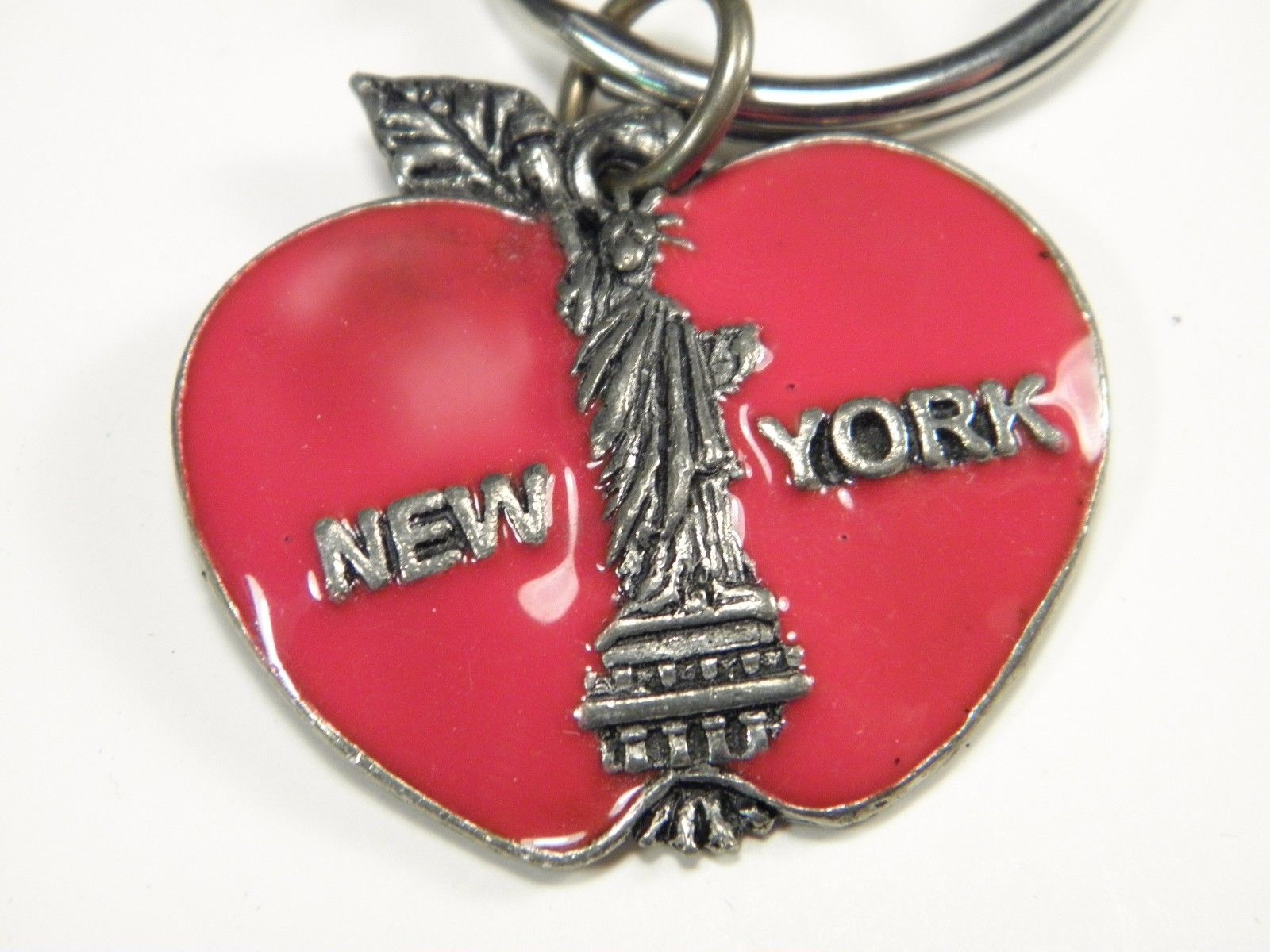 Title (ebay affiliate link): Vintage NODE ART Metal Keychain New York City Big Red Apple Statue of Liberty
