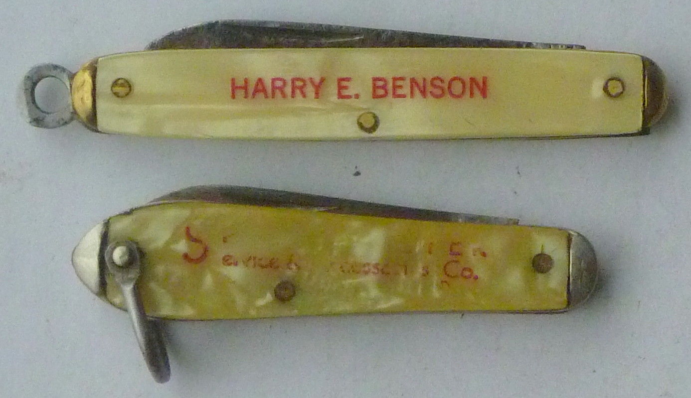 Vintage lot of 2 Advertising Key Chain 1 blade Knives, Utica, Colonial, Benson!