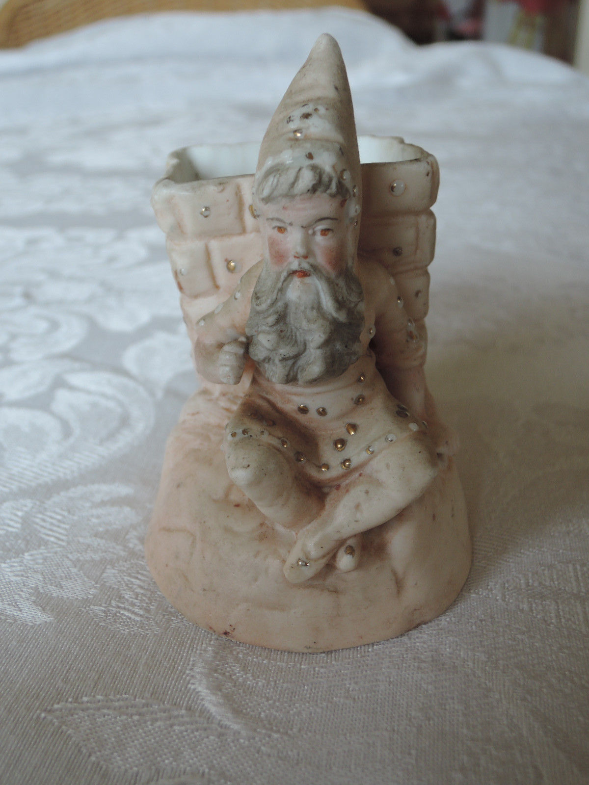 Title (ebay affiliate link): German bisque dwarf or elf spill/match holder or fairing, pink and gold, Easter