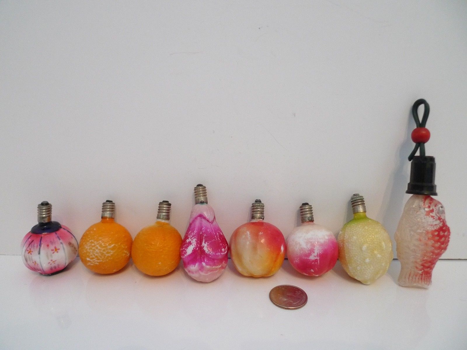 Title (ebay affiliate link): Vintage Milk Glass Christmas Light Bulbs Lot of 8 Fruit Flower Lantern Fish !!!