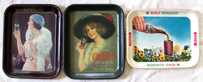 3 Tin Coca-Cola Serving Trays