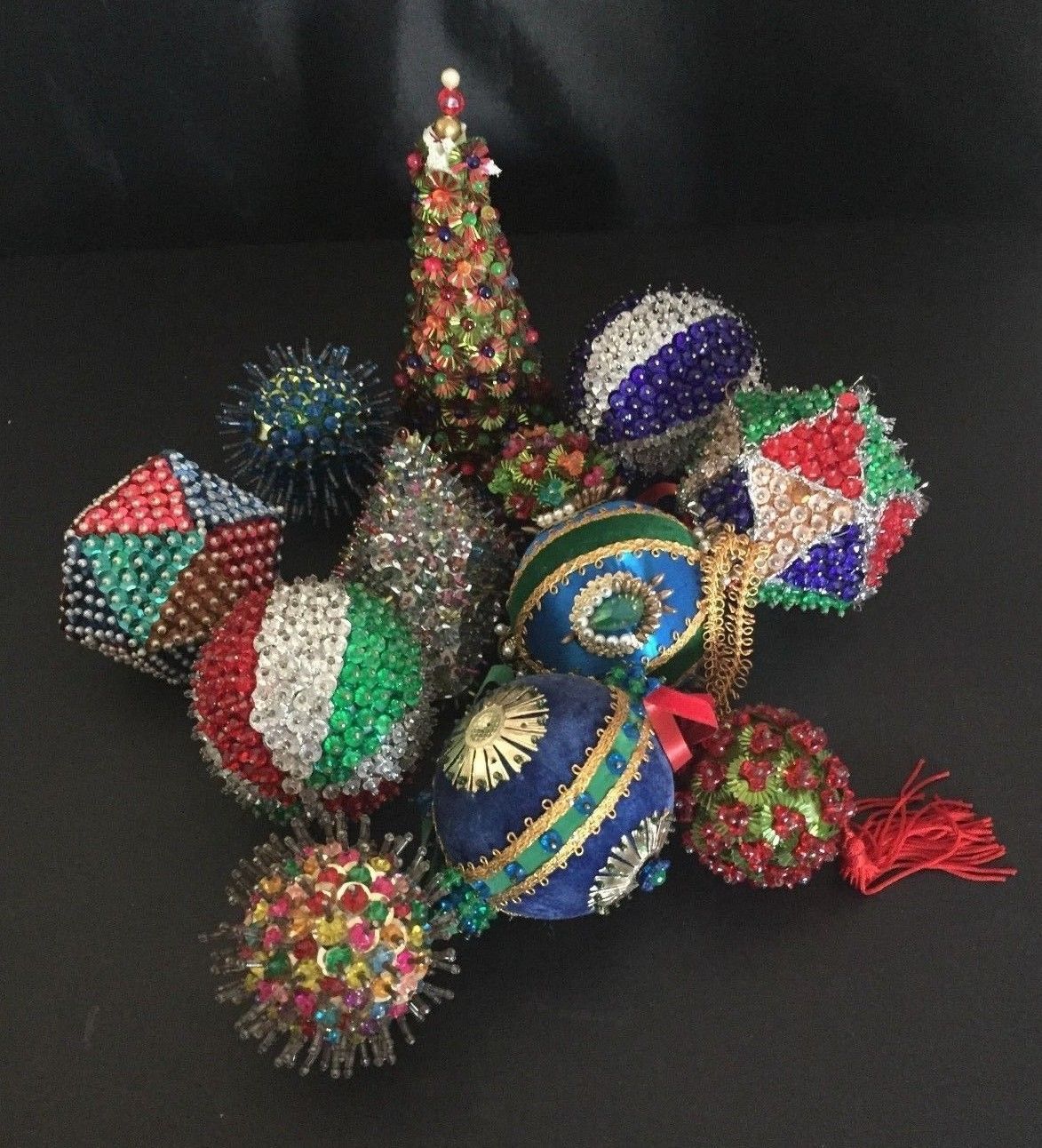 Title (ebay affiliate link): Vintage-Beaded-Jeweled-Sequin-Christmas-Tree-Ornaments-Mixed-Lot-12
