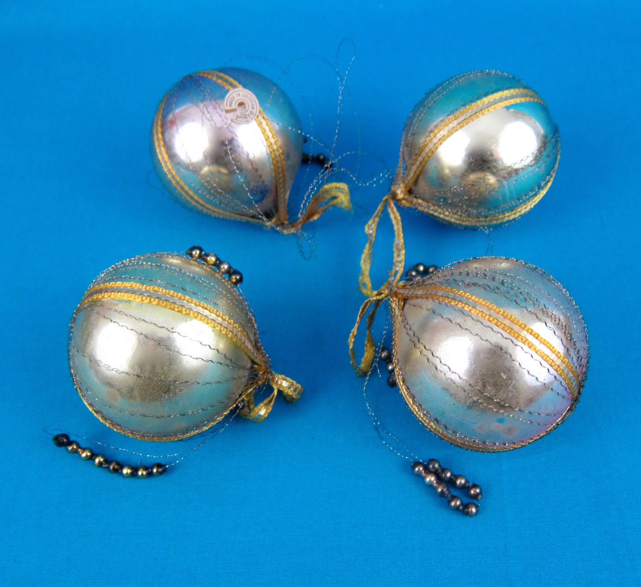 Title (ebay affiliate link): 4 Antique Ornament LOT Wire Tinsel Wrapped Balls W GERMAN 20s 30s 40s vtg XMAS
