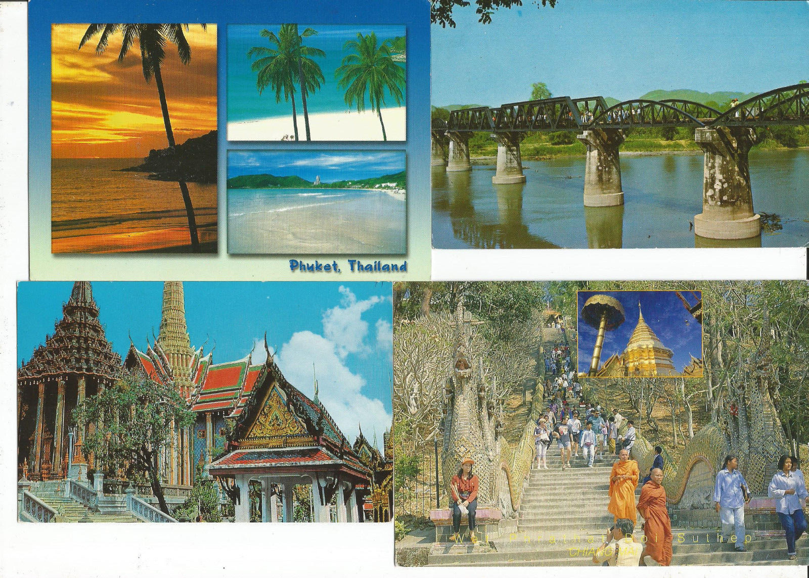 4 POSTCARDS FROM THAILAND, SOUTH EAST ASIA, PHUKET, BANGKOK, CHIANG MAI, R. KWAI