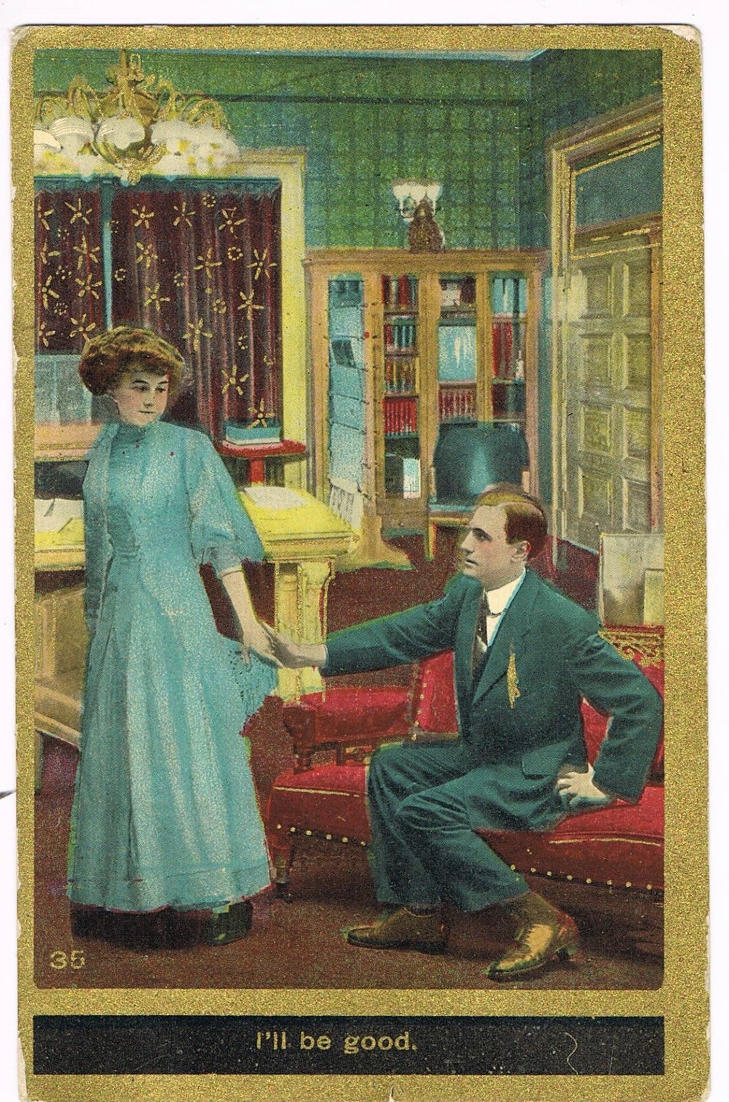 ANTIQUE ROMANCE Postcard "I''LL BE GOOD"