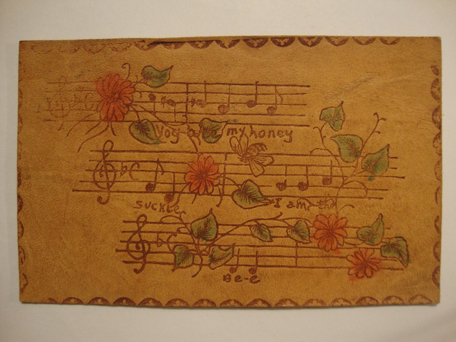 Title (ebay affiliate link): Vintage Leather Postcard - "You are my honey suckle. I am the Bee." - 1908, Ohio