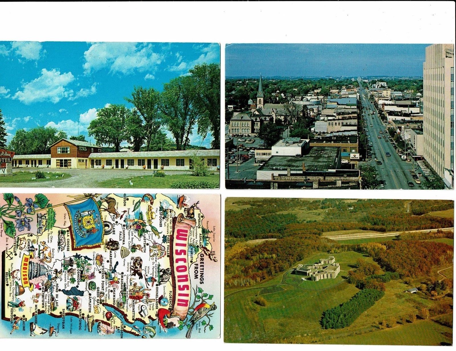 4 Card Wisconsin Lot, Map, Prairie Du Chien Motel, Eau Claire School, Appleton!