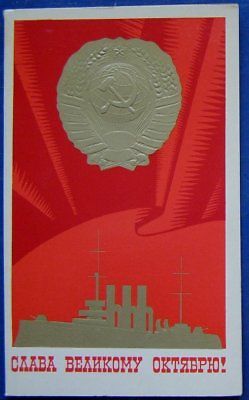 Title (ebay affiliate link): 1979 SOVIET POSTCARD PROPAGANDA NATIONAL EMBLEM ARMS CRUISER AURORA com 448a