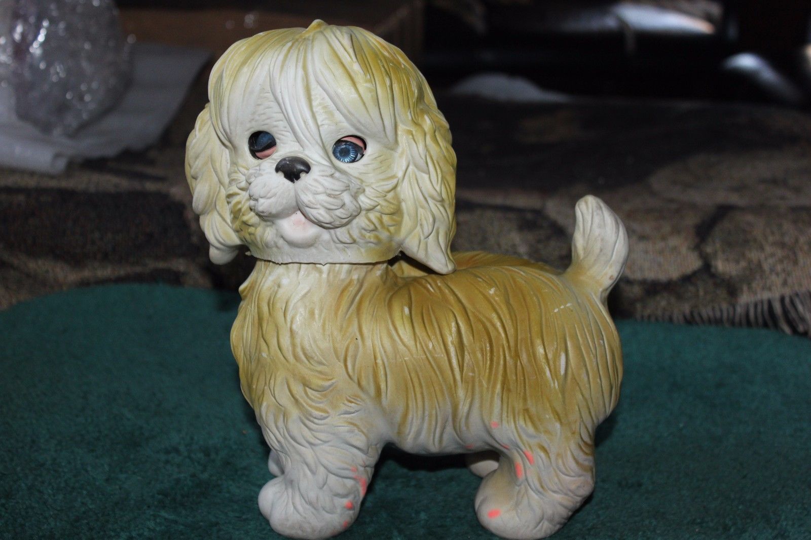Title (ebay affiliate link): Vintage 1960''s Edward Mobley Tan-White Dog Squeak Arrow Rubber Sleep Eyes