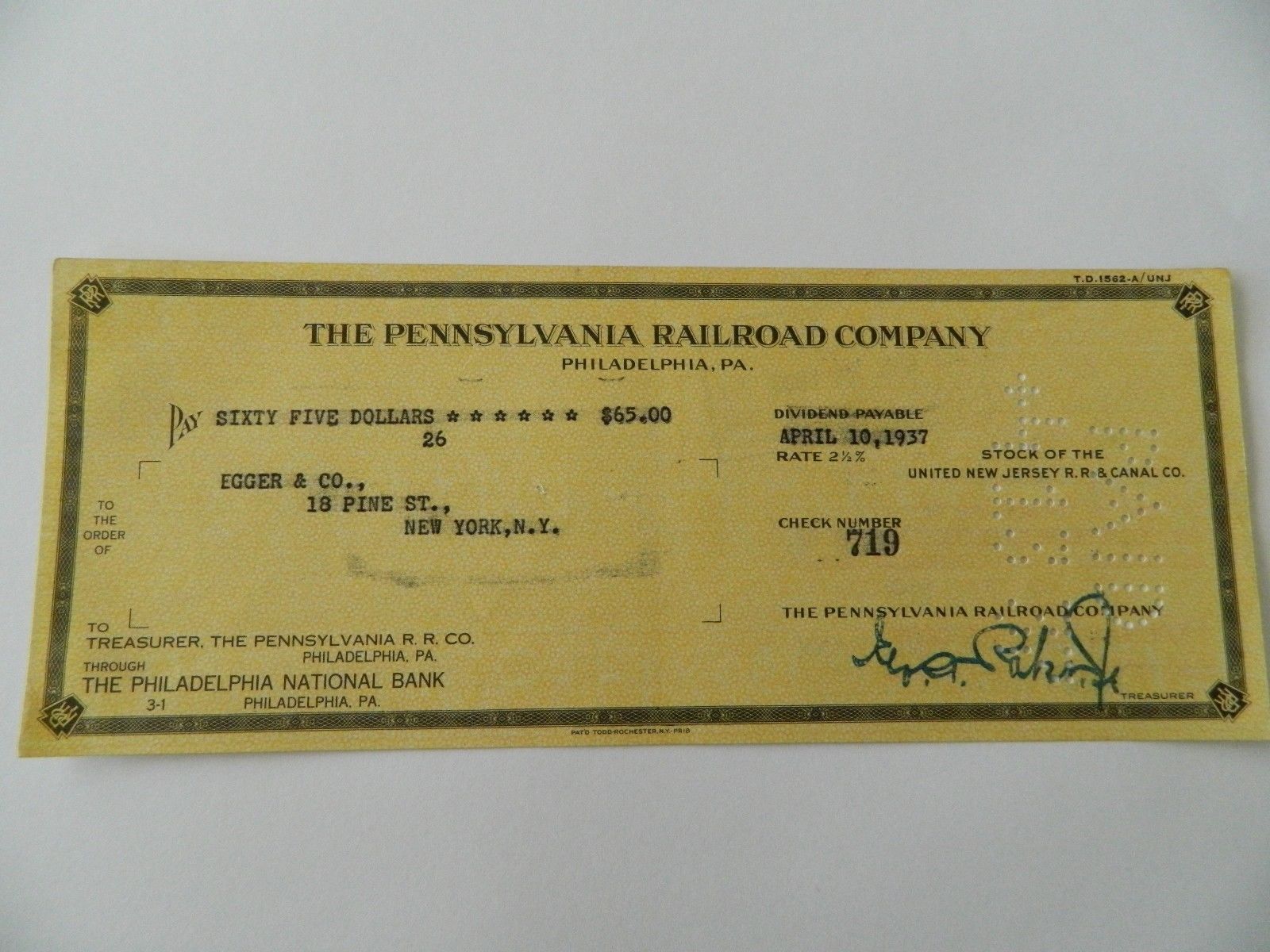 Title (ebay affiliate link): 1937 THE PENNSYLVANIA RAILROAD CO. DIVIDEND CHECK 2060