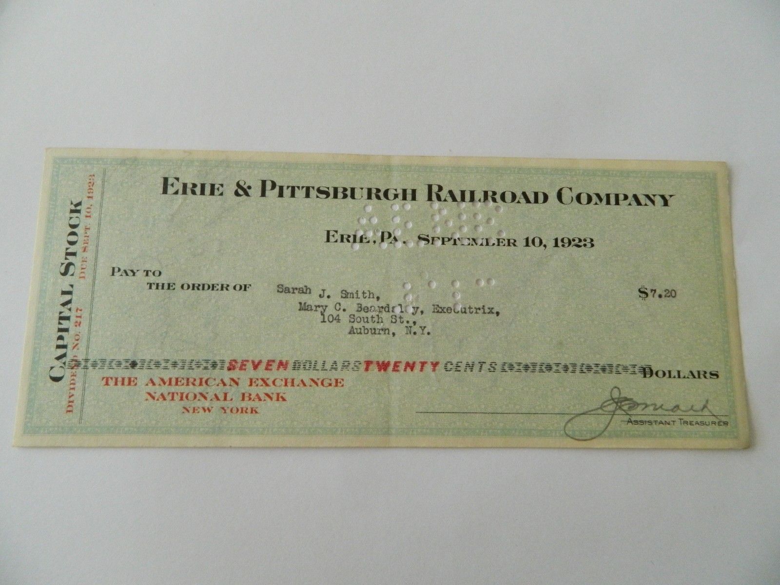 Title (ebay affiliate link): 1923 ERIE AND PITTSBURGH RAILROAD CO. DIVIDEND CHECK 2064