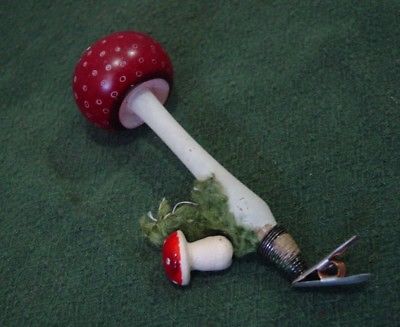 Title (ebay affiliate link): Vintage Italian Blown Glass & Spun Cotton Mushroom Christmas Ornament Clip