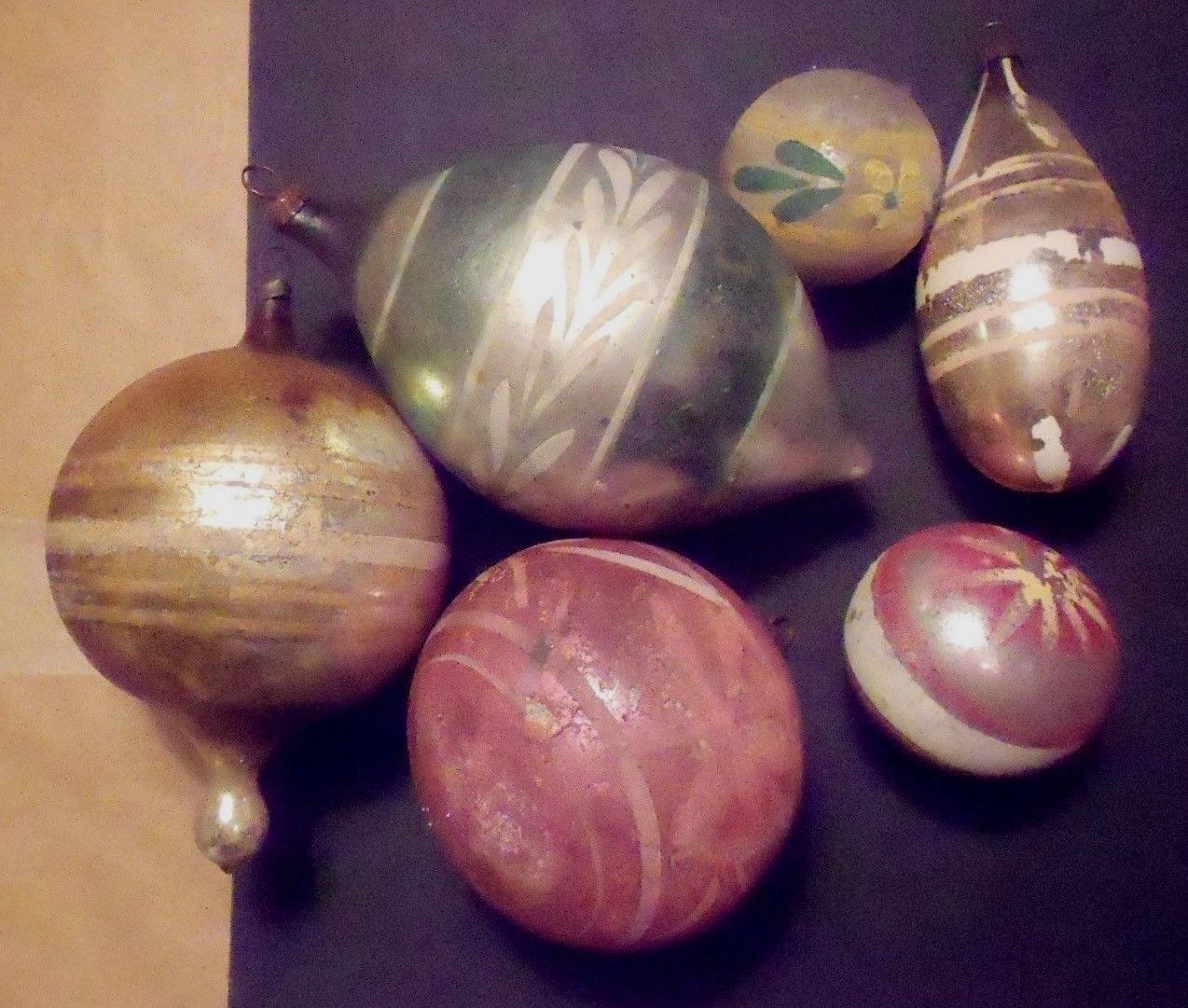 Title (ebay affiliate link): 6 Piece Lot Antique Mercury Glass Christmas Ornaments Hand Painted Teardrop