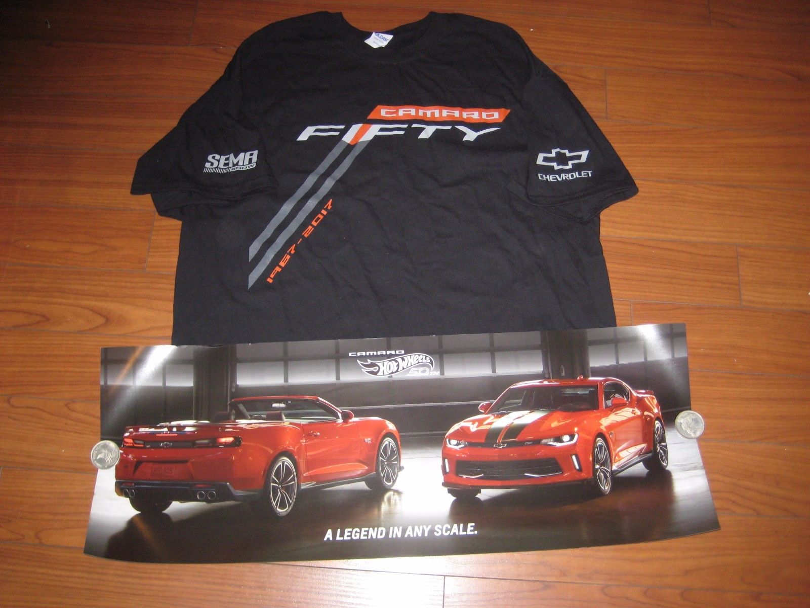 RARE SEMA 2017 CHEVROLET CAMARO 50TH ANNIVERSARY POSTER & T-SHIRT ALSO HOTWHEELS