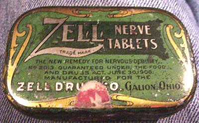 ZELL NERVE TABLETS 1906 MEDICINE TIN