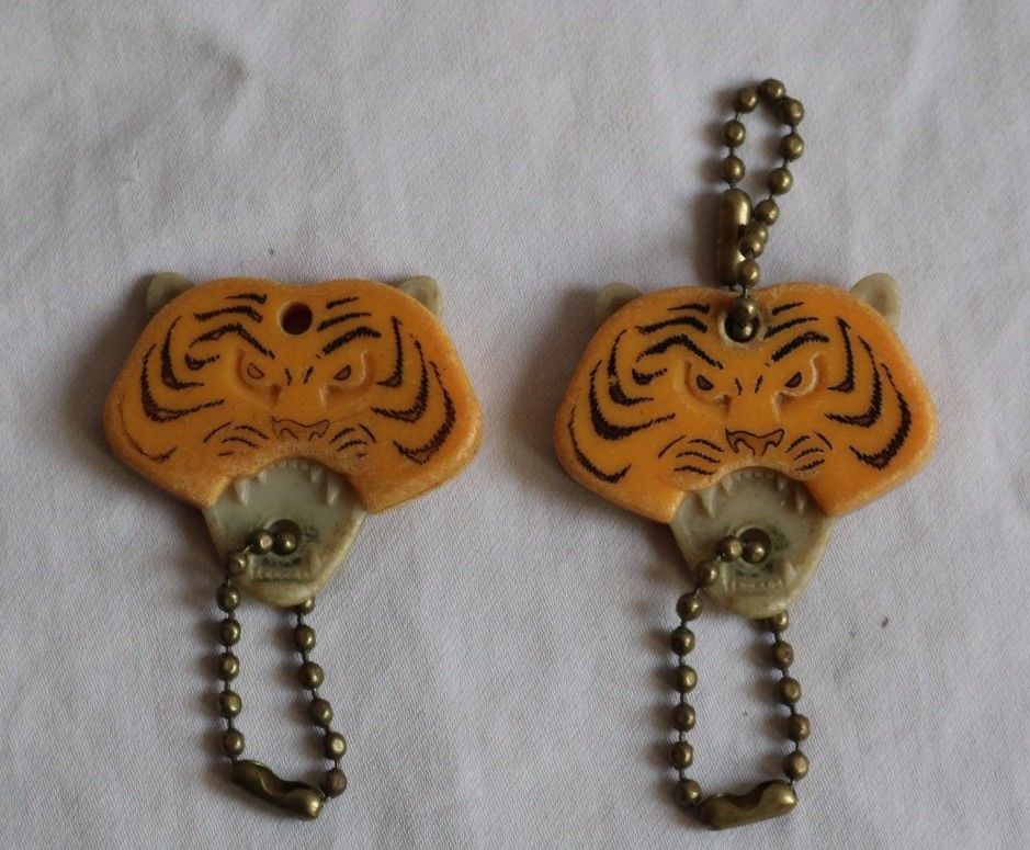 vintage Esso Tiger Key chains, two with advertising on back