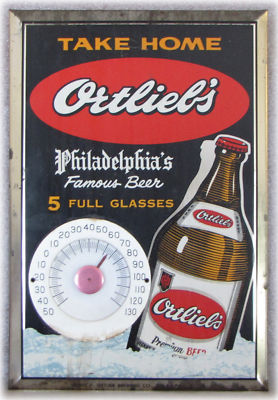 VTG VHTF 1950's Ortlieb's Beer Old Thermometer Tin Sign