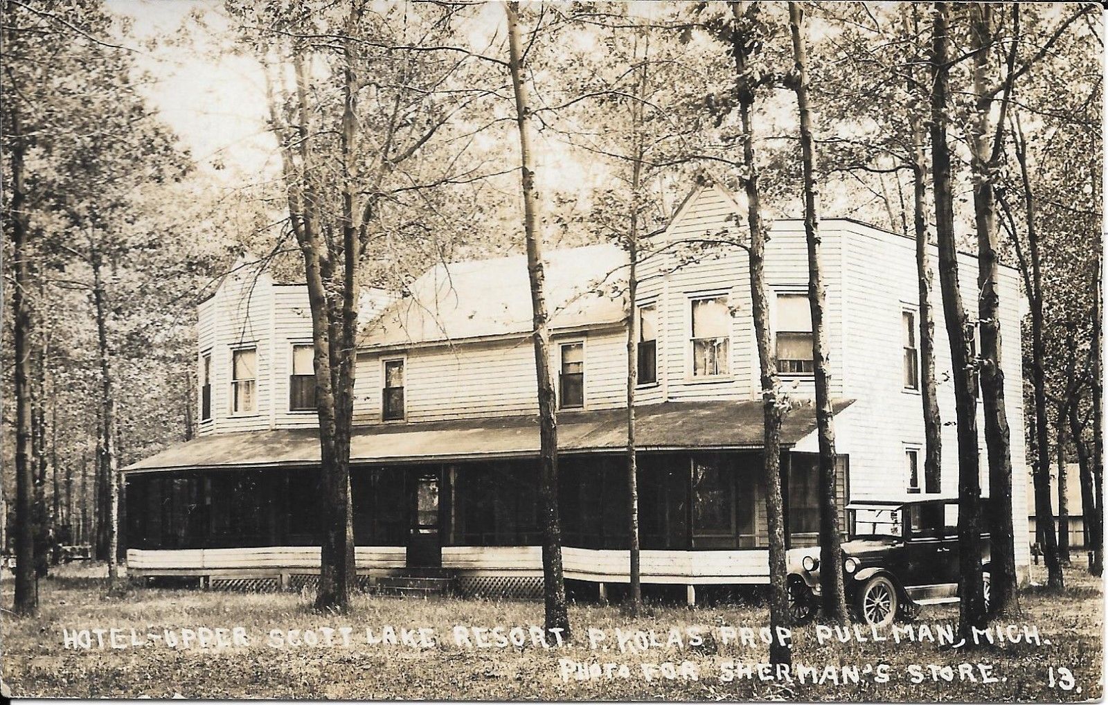 Hotel -Upper Scott Lake Resort -P. Kolas Prop''r -Pullman , Mi pm 1920 Allegan Co