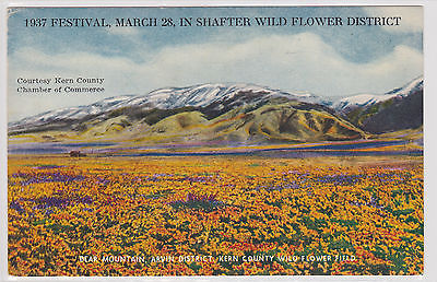 Title (ebay affiliate link): Shafter Wild Flower Festival; 1937 Kern County, California CA postcard; Mailed