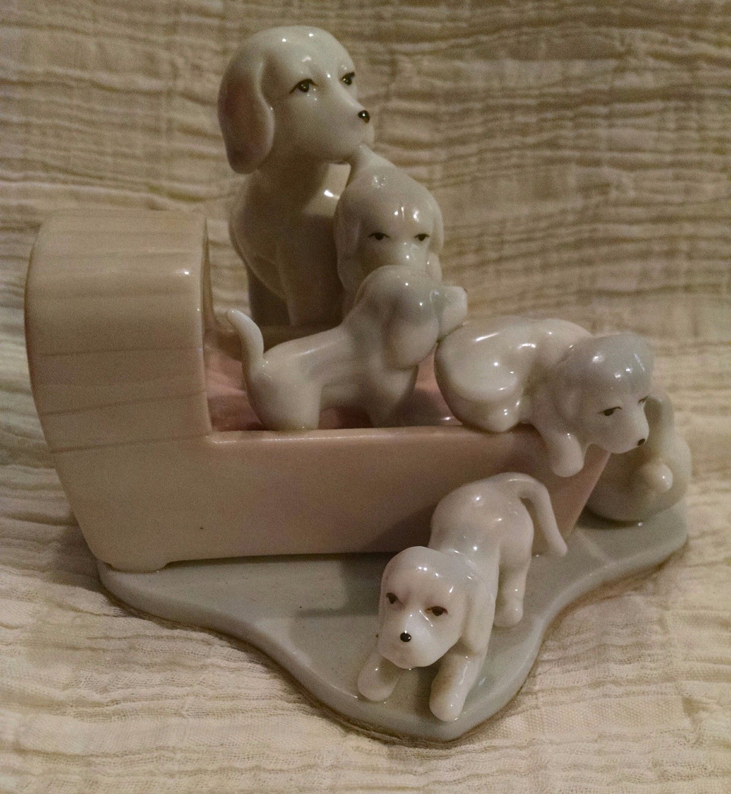Porcelain Figurine Mother Labrador Dog 5 Puppies Putting to Bed 4 1/2"x4"x3"Tall