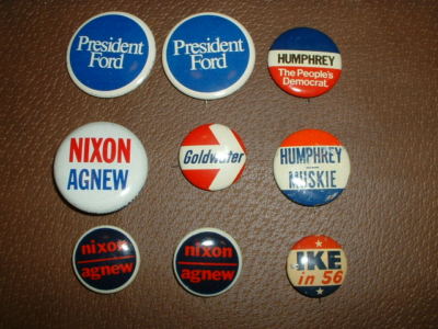 Election Buttons: Ike, Goldwater, Nixon, Humphrey, Ford