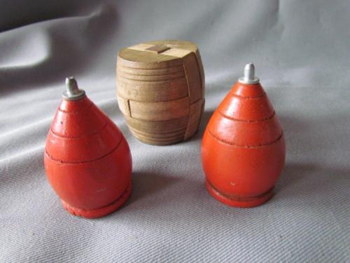 Vintage Wooden Toy Tops & Puzzle Barrel