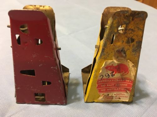 Title (ebay affiliate link): 2 ANTIQUE RUNWAY METAL MOUSE TRAPS, RED, YELLOW KLEMME IOWA IA. FREE SHIPPING