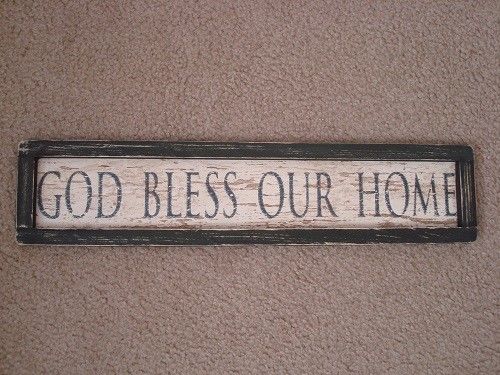 Title (ebay affiliate link): Primitive Country Print ~GOD BLESS OUR HOME~ Black Frame 20 1/2" x 4 1/2"