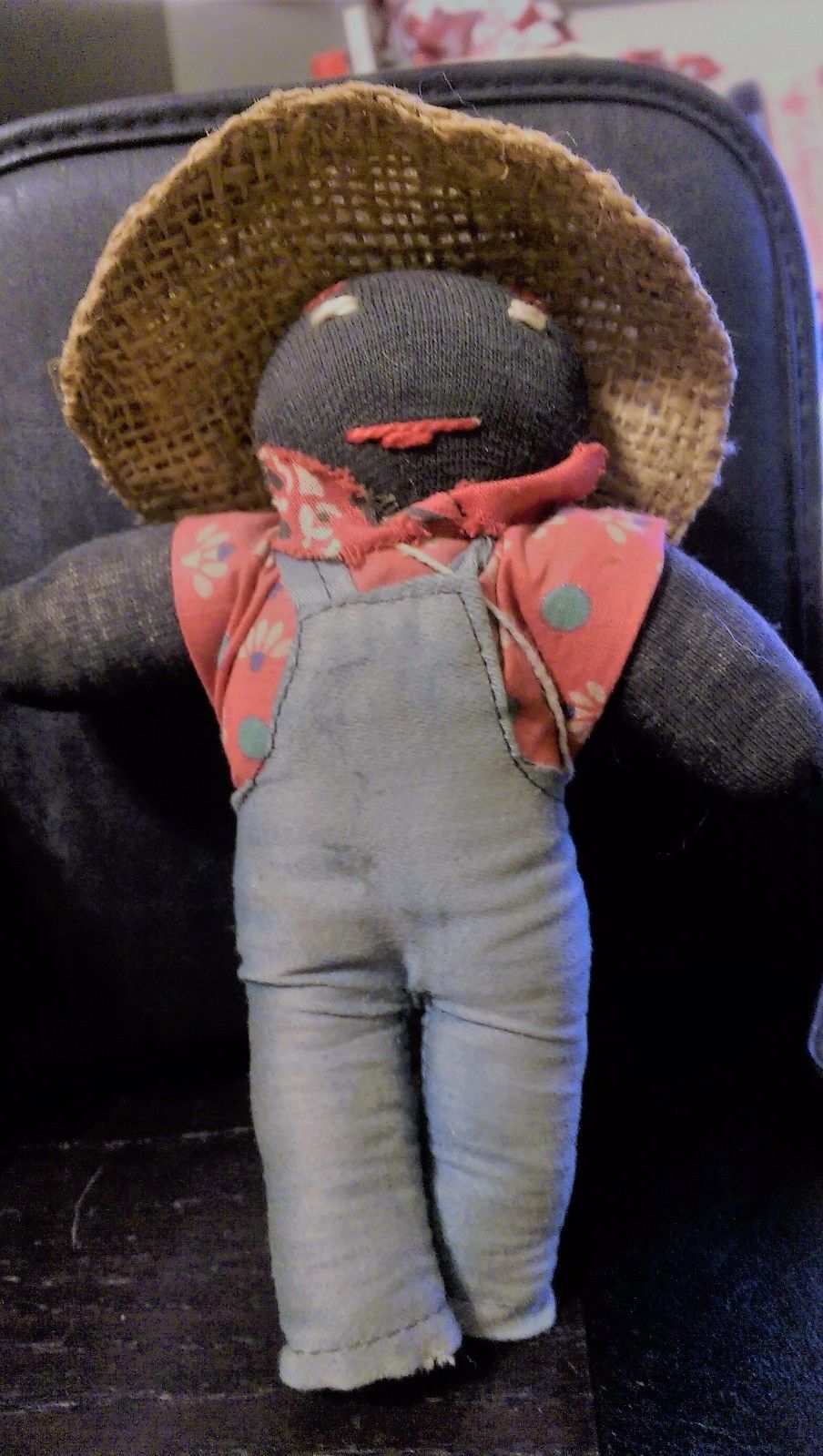 Vintage Black folk art primitive doll with burlap bag and and burlap hat