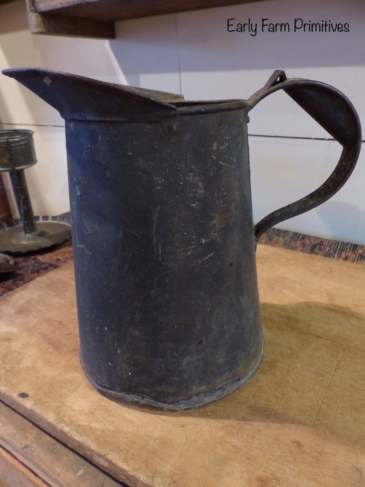 EARLY ANTIQUE DARK TIN PITCHER