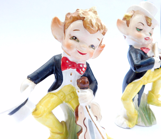 Title (ebay affiliate link): Vintage Lucky Irish Elf Elves Leprechaun Figurines Set of 2 Lefton 1950s Damages